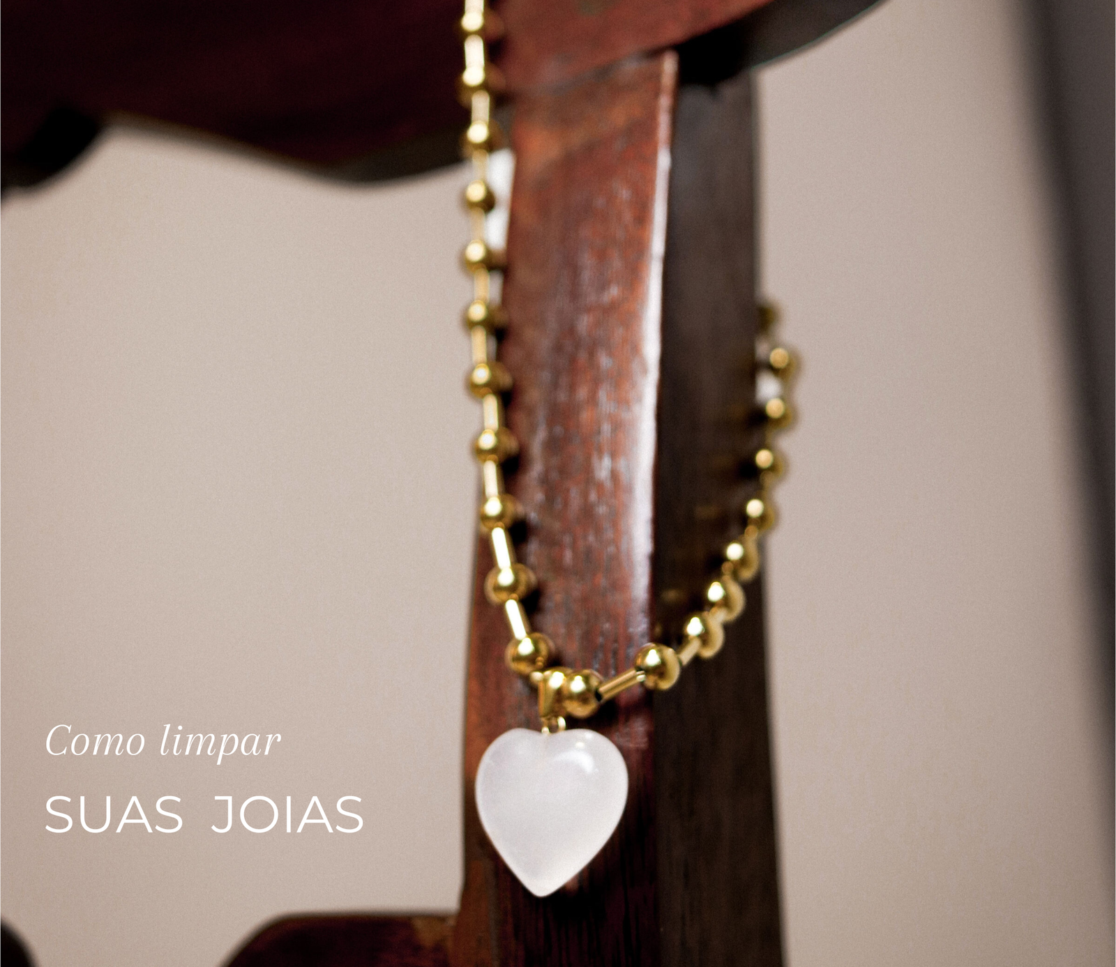 Produtos como perfumes, cremes ou qualquer líquido não devem ser aplicados diretamente nas joias.