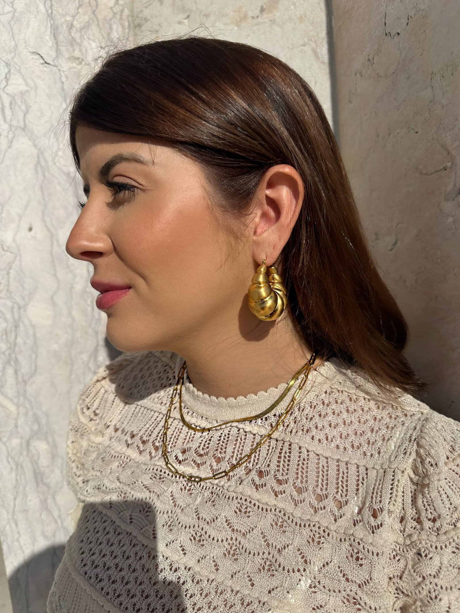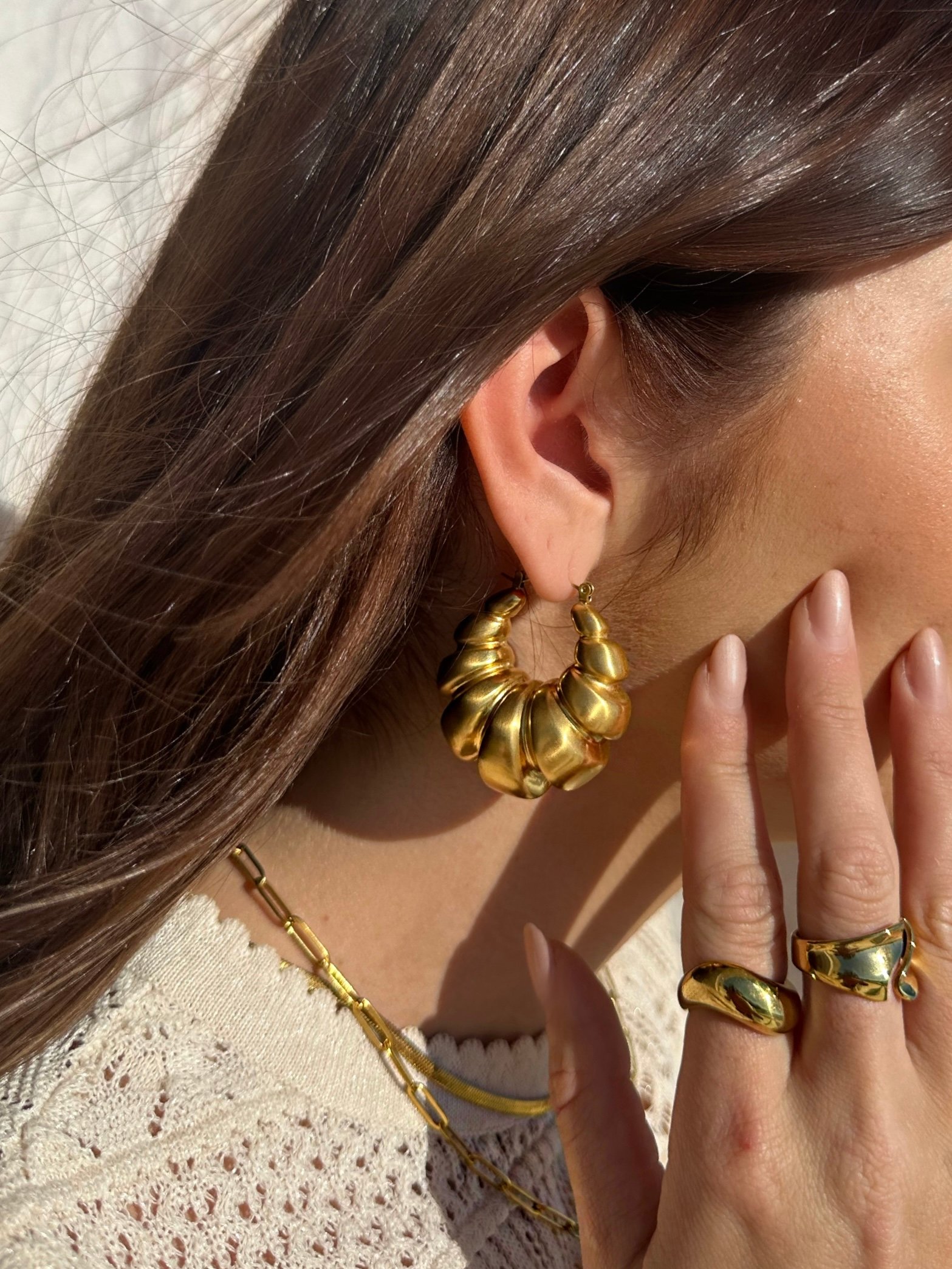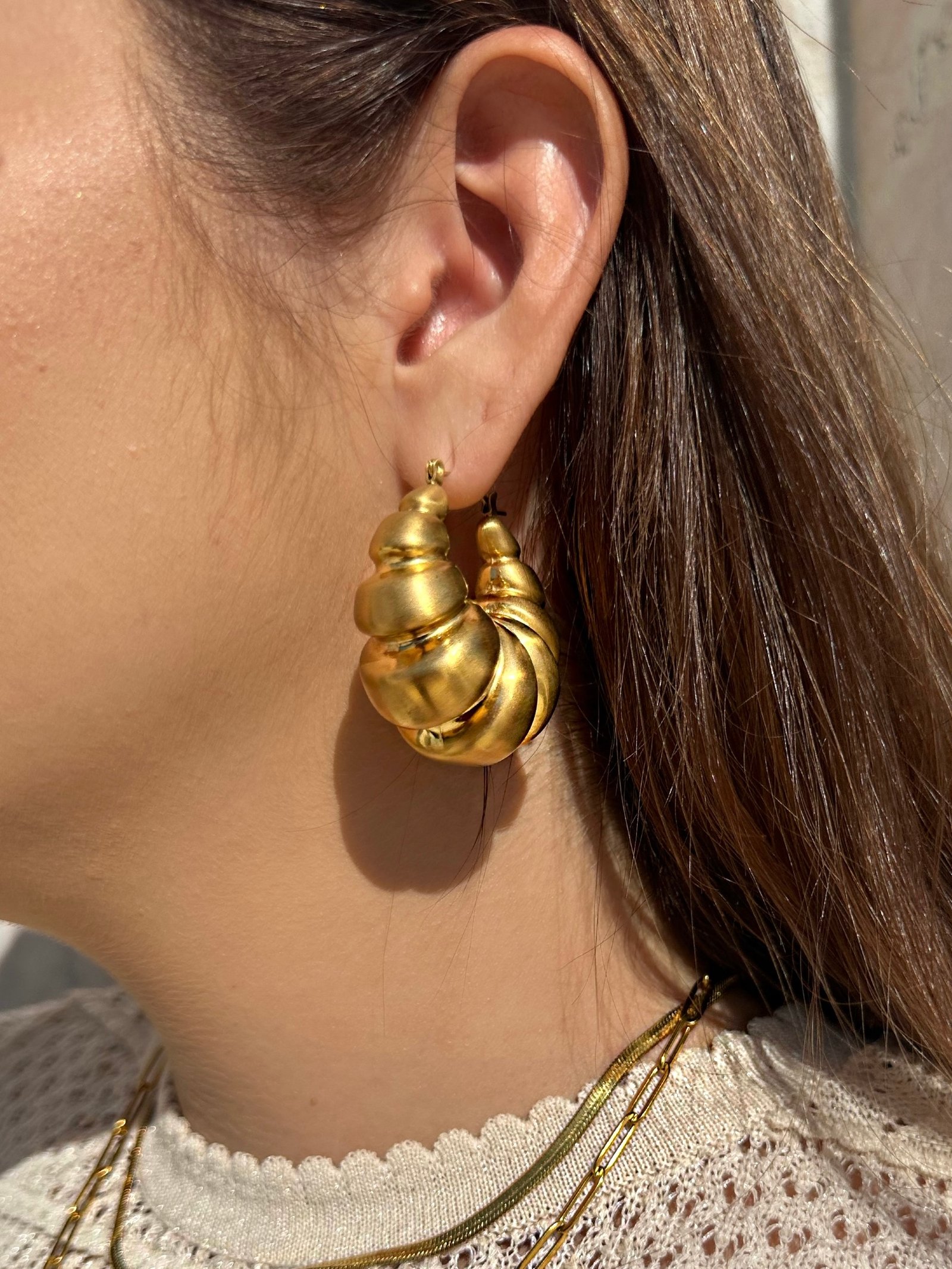 Com curvas suaves e textura delicada, o Brinco Croissant é uma peça charmosa que une elegância clássica com um toque moderno. Inspirado no formato do tradicional croissant francês, seu design sofisticado e levemente volumoso traz personalidade ao visual sem perder a leveza. Ideal para quem ama acessórios diferenciados e cheios de estilo, é perfeito para compor looks do dia a dia ou ocasiões especiais.