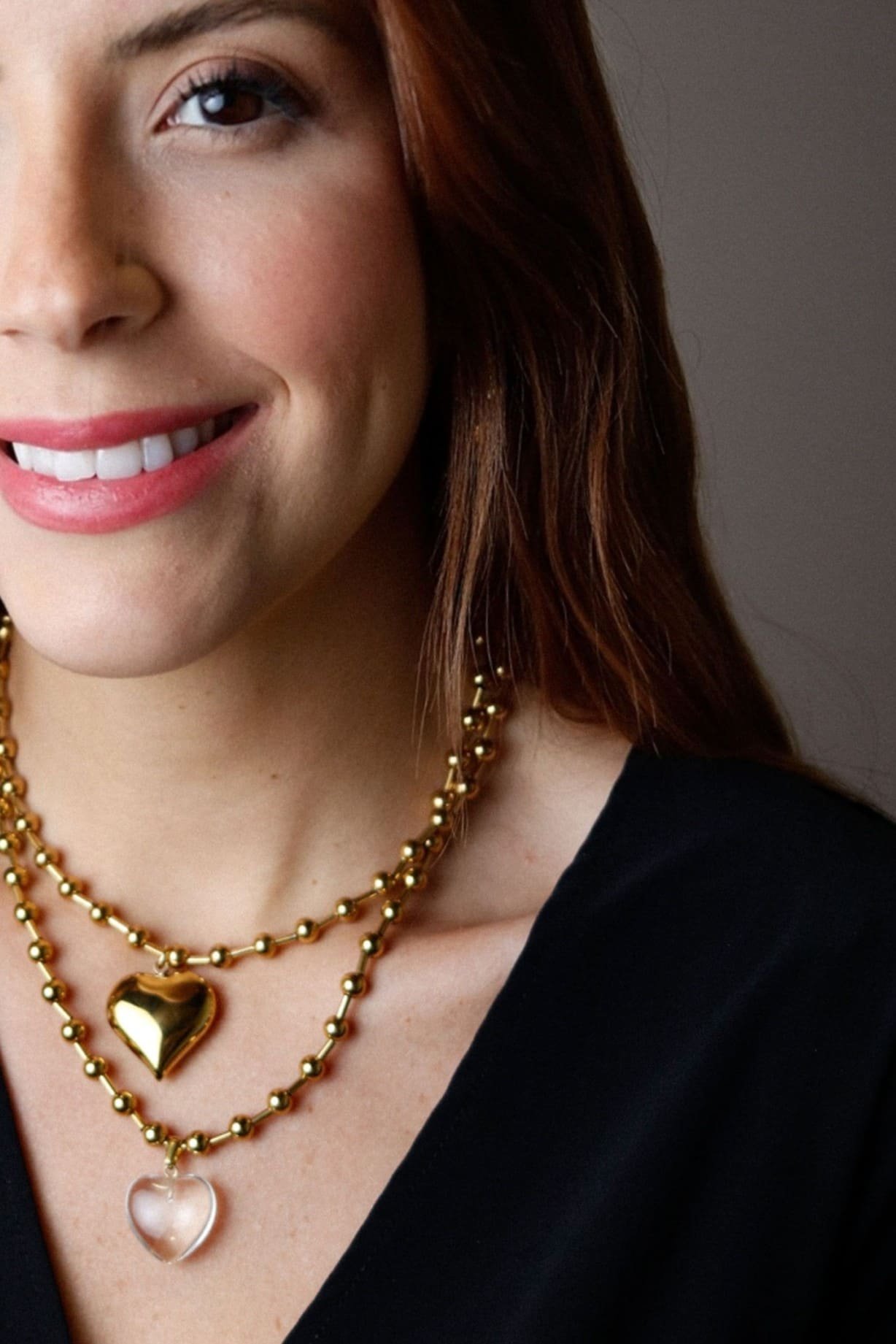 Encante-se com a suavidade e o charme do Colar de Bolinhas com Coração Dourado e leve o símbolo do amor sempre com você. 💛✨