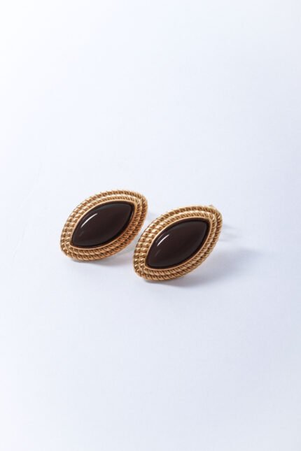 Brinco Oval com pedra preta